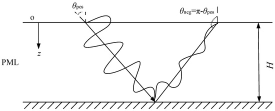 Consider a plane wave propagating into the PML domain along the z-axis at a θ angle (Figure 5); this wave can be expressed as follows:
