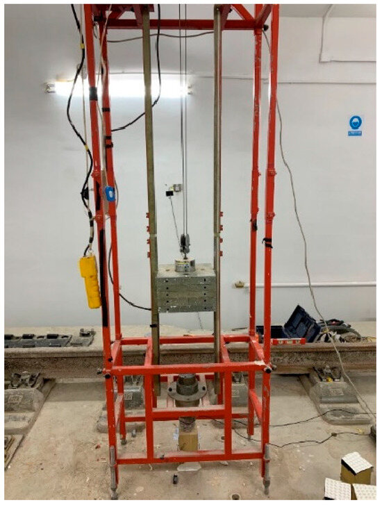 In the test, automatic drop hammer excitation equipment was used for exciting the vibration source. As shown in Figure 10, the impact force can be changed by adjusting the weight of the drop hammer and the lifting height of the drop hammer. The falling process of the drop hammer can be approximately regarded as a free-falling motion. The hammer head was equipped with a piezoelectric stress sensor, and the hammer force signal can be collected with high-precision data acquisition instrument. The equipment can excite a large impact energy in the tunnel in order to generate an effective vibration response at ground level.