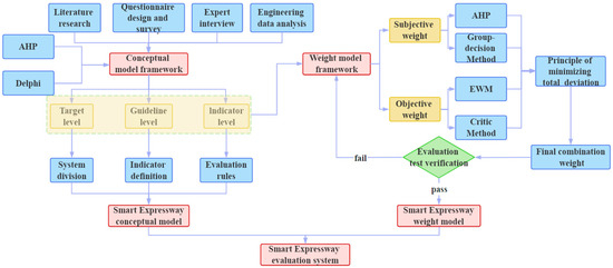 In the process of addressing the issue of weight allocation for multi-objective decision-making, two reliable methods are available [30,31]. The first category is subjective weighting methods, such as the Analytic Hierarchy Process (AHP) [32,33], expert scoring method [33,34], and Fuzzy Analytic Hierarchy Process [35]. The second category is objective weighting methods, including the critic method [36] and entropy weight method [37]. The studies mentioned above have formed the research methods and foundation for the evaluation system of smart highways [38].