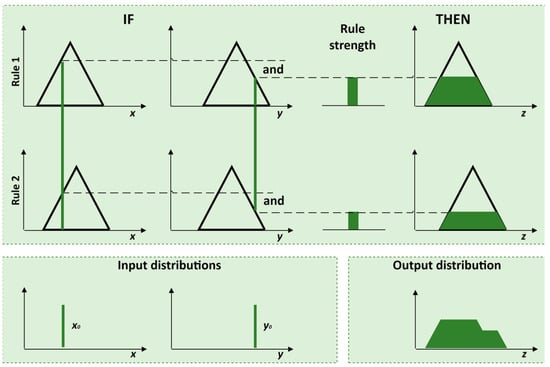 Here, A, B, and C are fuzzy sets in the input and output spaces. The fuzzy operator ‘and’ is typically implemented as a minimum or maximum operator: