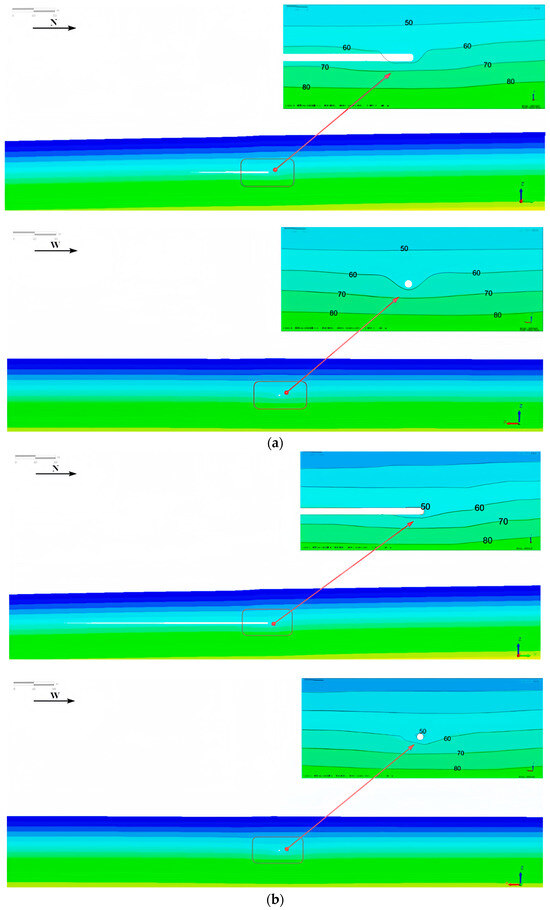 When the drainage rates are 25%, 33%, 50%, and 66.7%, the distribution characteristics of the confining pressure water pressure in the east–west and north–south directions of the tunnel are shown in Figure 11.
