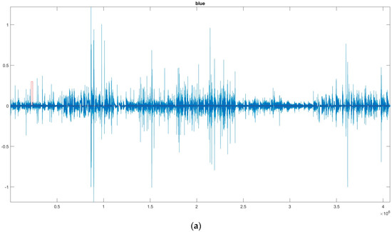Waveform of speaker identification results, where the red box denotes the current analysis frame: (a) Blue speaker; (b) Cindy speaker.