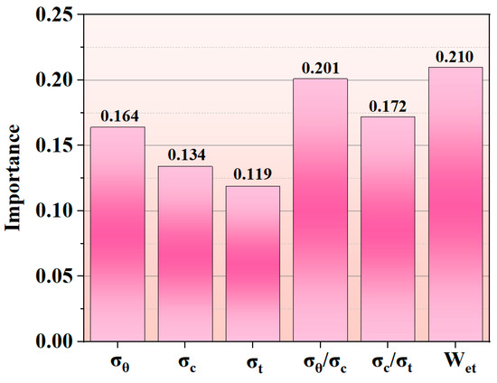 For the prediction results of different models, the SHAP method was employed to quantify the impact of different evaluation indexes on the intensity level of rockbursts, and the results show that the elastic strain energy index and stress ratio have the greatest influence on the intensity level of rockbursts, and their characteristic importance is as high as 0.21 and 0.201, respectively. For the other characteristics, although their importance is not as high, they have a non-negligible influence on the intensity level of rockbursts. The other features are not as important, but their influence on the intensity level of the rockburst is not negligible. Therefore, these features should be taken into account in engineering applications and research to make the prediction of rockburst intensity levels more reliable.
