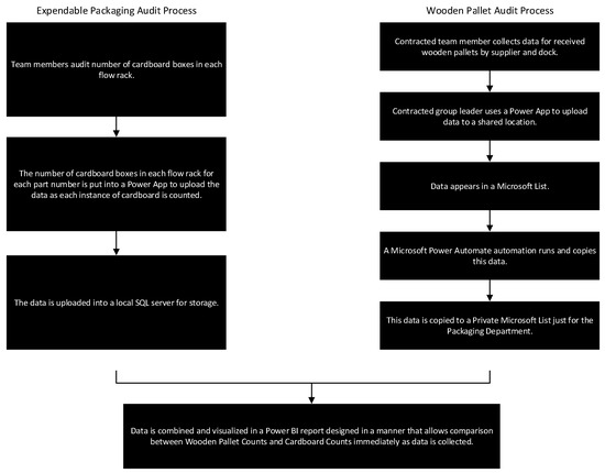 With the wooden pallet audit process, instead of scanning the physical documents to PDF, the data can be input directly into the Power App to upload data to a Microsoft List for easy data storage. A Power Automate flow can be created to automatically duplicate this into an additional Microsoft List that only the packaging team can access as a layer of data security. As both of the audit processes are largely automated, this will allow for a near-instant update of any visuals created through software like Power BI. This will empower the packaging team to combat issues with packaging volume with extreme accuracy and have the data to drive the conversation with the supplier. Both of these processes can be found in Figure 3.