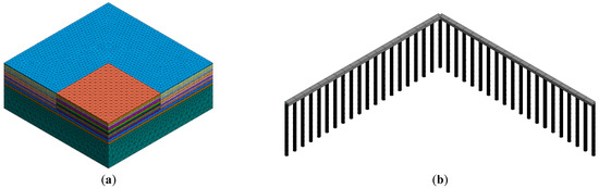 Components of numerical model gridding. (a) Overall model gridding (b) Steel-pipe pile beam model.