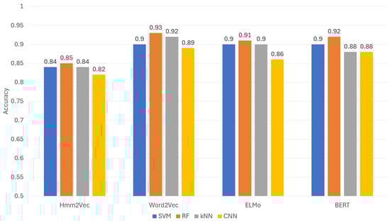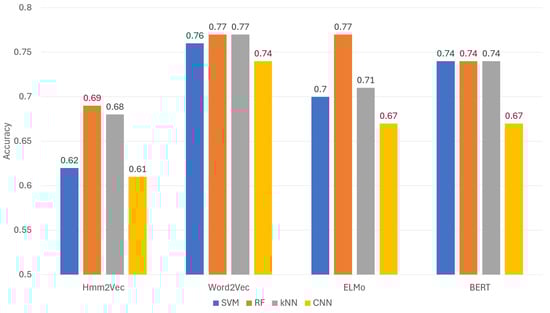 For future work, the scope of the experiments conducted herein can be extended to encompass a broader range of malware categories and families. Exploring analogous experiments with alternate features, such as byte n-grams or combinations thereof, could yield promising results. In addition, ensemble learning could be tested to understand its benefit with these specific types of data. Also, additional study on the effect of obfuscation techniques on the embeddings could be an interesting follow-up to this work. While this research relied on frequency-based feature selection, techniques like TF-IDF [