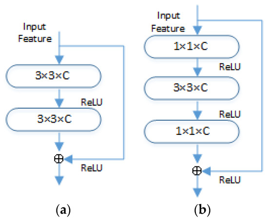 Residual structure. (a) BasicBlock module. (b) BottleNeck module.
