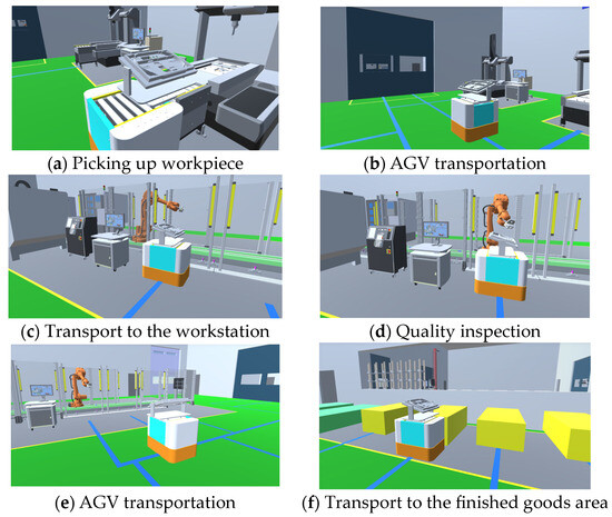 From the simulation results, the quality inspection robot is capable of defect detection on the parts carried by the AGV. After identifying the defect type, the data are uploaded to the Manufacturing Execution System (MES). The AGV receives this data and transports the parts to their respective units, achieving the expected outcome. Through experimentation, it has been verified that the quality inspection robot workstation provides a favorable human–computer interaction environment, and the workflow operates seamlessly. The design proposal for the inspection robot workstation is feasible.