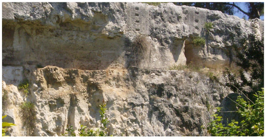 - Mastelloni, M.A.; Ercoli, L.; Nocilla, A.; Nocilla, N.; Sciortino, R.; Zimbardo, M. The Latomiae of Syracuse: A Geotechnical Mapping through Rock Reflectivity. In Engineering Geology for Society and Territory-Volume 8: Preservation of Cultural Heritage; Lollino, G., et al., Eds.; Springer International Publishing: Berlin/Heidelberg, Germany, 2015; Volume 8. [Google Scholar]