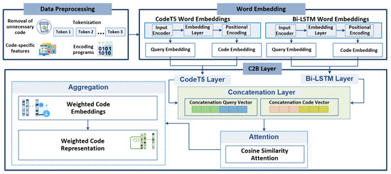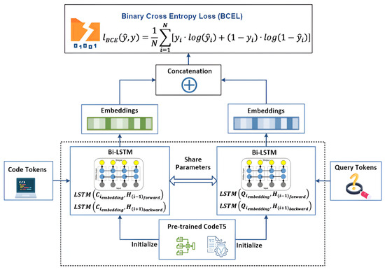 Deep learning techniques for code search, as discussed in [16], tend to overlook the knowledge gap existing between code snippets and user queries. Instead, they prioritize learning pattern matching based on the semantic relationship between the code and its corresponding description. Recently, a lot of academics have been working in this field to identify new ways to overcome the gaps in existing work [17]. To address the above-stated limitations of existing approaches, this research aims to propose a hybrid neural code search approach that leverages CodeT5 [18] (a pretrained transformer-based model; transformer-based models in deep learning revolutionized natural language processing. These models rely on self-attention mechanisms to capture contextual relationships between words in a sequence without relying on recurrent or convolutional structures) and Bi-LSTM. The proposed model is named “CodeT5 and Bi-LSTM hybrid model” (C2B). The Bi-LSTM processes sequential data, capturing contextual information in both forward and backward directions. This capability is essential for accurately parsing complex, context-rich queries. The C2B model employs CodeT5 [18], a specialized version of the T5 [19] model tailored for code, to comprehend the semantics of both natural language and code. The CodeT5 adaptability across various programming languages and frameworks significantly enhances the model’s generalization. By combining these strengths, the C2B model offers a comprehensive approach that addresses the challenges of existing code search systems, providing developers with enhanced productivity and reduced development time and ultimately leading to higher-quality software development. This synergistic approach enhances the accuracy of code search, improves comprehension of complex queries, and facilitates code reuse, addressing key limitations in existing systems.