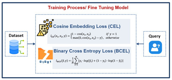 In this training strategy, we aim to bring the embeddings of the true clone pairs closer to the common embedding space and simultaneously push the embeddings of nonclone pairs farther from each other. We use a cosine similarity metric to determine the level of similarity between each code pair. Using the cosine similarity, we define a cosine embedding loss and plan to minimize the loss by updating the model parameters. In this way, the model learns to project the code into an embedding vector rich in code syntax and semantics.
