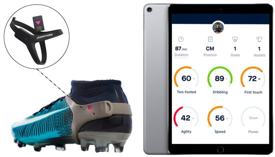 The technical and physical loads of the U18 semi-professional soccer players during match play were registered using IMUs (“Inertial Measurement Units”) with Playermaker devices (Tel Aviv, Israel). All values were recorded and stored in the IMU sensor, to be later downloaded via Bluetooth to an iPad (Apple Inc., Bakersfield, CA, USA, 9th generation). The data were then transmitted to the servers, where they could be processed and analysed on the website. For more information about the instruments used, see the protocol of Losada-Benitez, Nuñez-Sánchez, and Barbero-Álvarez (2023) [13] (Figure 1).