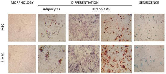MSC and S-MSC characterization. Morphology, differentiation, and senescence of representative MSC and S-MSC samples.