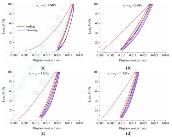 Figure 5. Representative load–displacement curves of cyclic loading–unloading indentation tests.