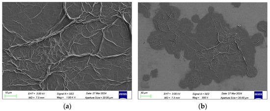 As is shown in Figure 7, the SEM images of GO are presented at different measurement scales. It can be seen that GO exists in sheet form, the surface has certain folds, and the specific surface area is large.
