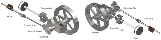 - Single-Cylinder Horizontal Steam Engine with a Crosshead Trunk Guide. Available online: https://modelengineeringwebsite.com/Muncaster_4c_mill_engine.html (accessed on 22 May 2024).
