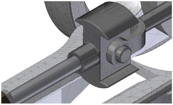 In this study, joining elements were omitted, as many of them necessitate a very fine mesh and, moreover, their quantity within the assembly is substantial. Consequently, some of these elements (such as cap screws and nuts) were substituted with a “bonded”-type contact relationship, simulating a welded joint. Nonetheless, it is crucial to note that a welded joint is inherently more rigid than a joint utilizing cap screws and nuts. Therefore, if critical stress values arise in an area where a joining element ought to be present or in the contact region, these initially excluded elements must be reintegrated.