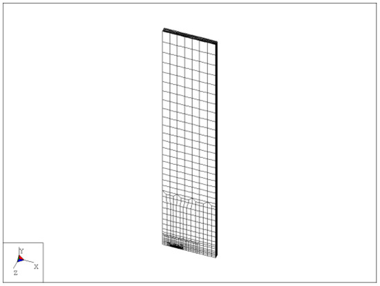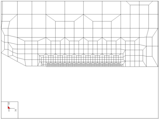 The network of elements for the SENT specimen—the clamped variant.