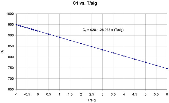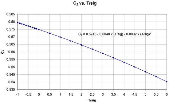 The next step is the calculation of C2(T/σ) according to relation (16) and expressing the course of this dependence (Figure 12) using a polynomial of the second degree (21):