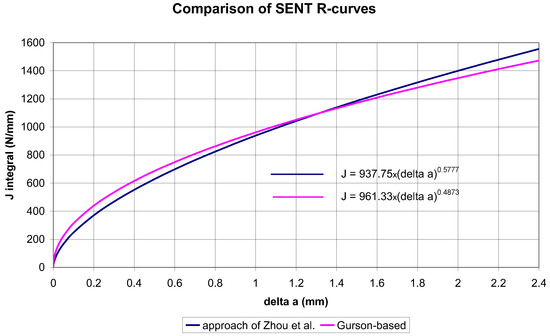 Comparison of the Gurson-based SENT R-curve with that based on Zhou’s approach [19].