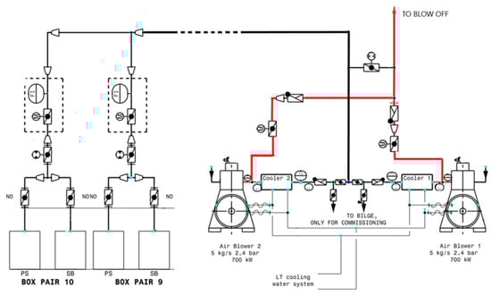 Compressed air supply system (ALS) of the underwater part of the hull on a large cruise liner. (Ref. [32] reproduced under a CC BY 4.0 DEED license).