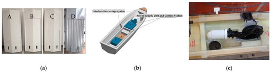 The 4 hull models under consideration (a), onboard elements of the model (b), and detail of the radial blower (c) (Ref. [41] reproduced under a CC BY license).