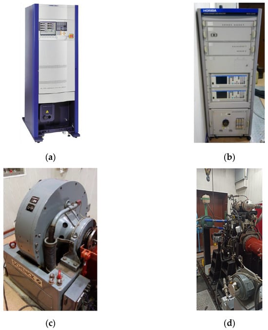 Test stand: (a) AVL CEB II exhaust gas analyzer, (b) apparatus for measuring particulates, (c) SCHENCK brake, and (d) Perkins 854E-E34TA engine.