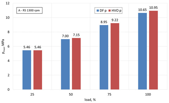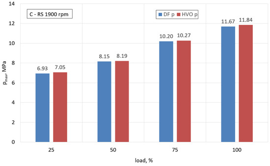 Maximum combustion chamber pressure values were determined at four loads and a constant engine crankshaft speed of 1900 rpm (C from ESC test).