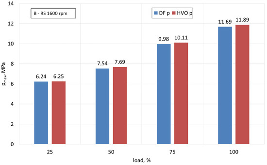 Maximum combustion medium pressure values were determined at four loads and a constant engine crankshaft speed of 1600 rpm (B from ESC test).