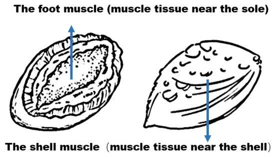 - Olaechea, R.P.; Ushio, H.; Watabe, S.; Takada, K.; Hatae, K. Toughness and Collagen Content of Abalone Muscles. Biosci. Biotechnol. Biochem. 1993, 57, 6–11. [Google Scholar] [CrossRef]