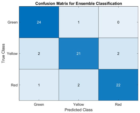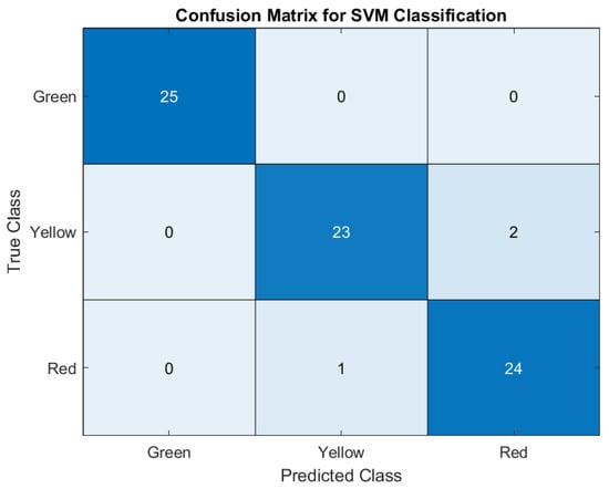 The confusion matrix reveals the model’s performance and challenges in classifying the tool states. The green class shows a precision of 61.90%, with the model correctly identifying 52% of green instances but also exhibiting a relatively high misclassification rate, leading to a specificity of 84%. This indicates a difficulty in distinguishing green states from others, potentially due to overlapping characteristics with yellow and red states.