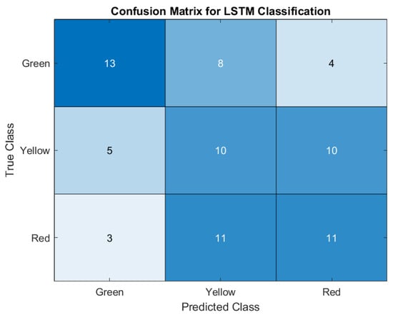 For the yellow class, the LSTM model achieves a precision of 34.48% and a sensitivity of 40%, suggesting a significant challenge in accurately identifying this intermediate tool state. The model’s specificity of 62% for the yellow class further underscores the difficulty in classifying instances that may not exhibit clear-cut features of wear or optimal condition.