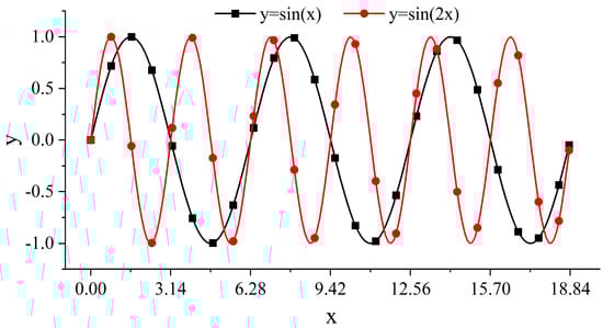 In the above representation of roughness, the amplitude parameters such as , only reflect the statistics of the longitudinal coordinate data of the rough surface, and miss the information of the horizontal direction of the rough profile. For example, for the two sinusoidal profiles shown in Figure 1, the amplitude is the same, but the curve frequency is different. If roughness indicators such as are used for calculation, the roughness obtained will be identical. Although there are also indicators that represent the spacing parameters in the horizontal direction, but they are all more one sided. Some recent studies [23,29,30,31] have shown that the roughness profile can be treated as a special signal, and the power spectral density obtained by discrete Fourier transform has a stable power–law relationship with the wavelength (or spatial frequency), such as Equations (3) and (4), or there is a linear relationship between the logarithms of the two, as written in Equations (5) and (6).