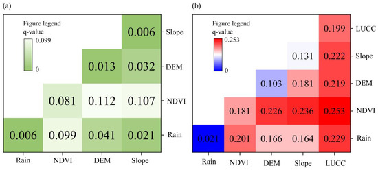 The value increases as the effect of various environmental factors on the spatial variation of soil erosion increases [45]. is used to measure the extent of such influence. Its expression is as follows: