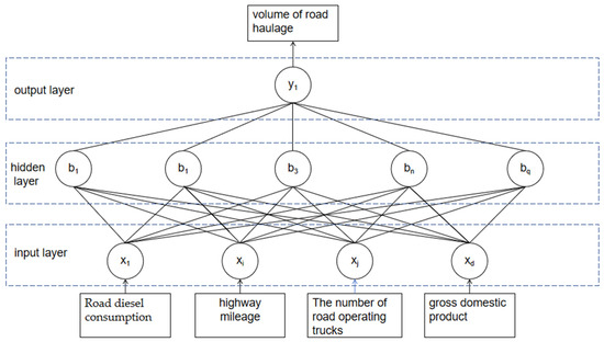 According to the strong nonlinear mapping characteristics of the neural network, only the input and output data of the object are given, and the characteristics of the mapping relationship between input and output can be achieved through the learning function of the network itself. By using the strong nonlinear mapping characteristics of the neural network, that is, through the input and output data of a given object, the mapping relationship between input and output can be achieved through the learning function of the network itself. The BP neural network includes input layer, hidden layer, and output layer. The input layer contains four factors, namely, road diesel consumption, road mileage, road operating truck ownership, and gross domestic product. For independent variables, the output layer is road freight volume, and the number of hidden layers is five. The effect is better. This is obtained through multiple tests. Finally, a 4-5-1 network is determined, and the structure is shown in