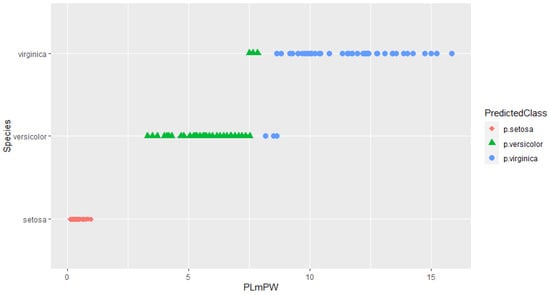The model shows slight improvement compared to the previous one. The number of outliers is reduced to six (accuracy improved to 96%). The 95% CI for the model accuracy is (0.9267, 0.9867). The model is more complex than its predecessor yet remains interpretable to humans.