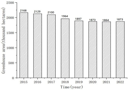 Changes in the cultivated area of greenhouses in China, 2015–2022.