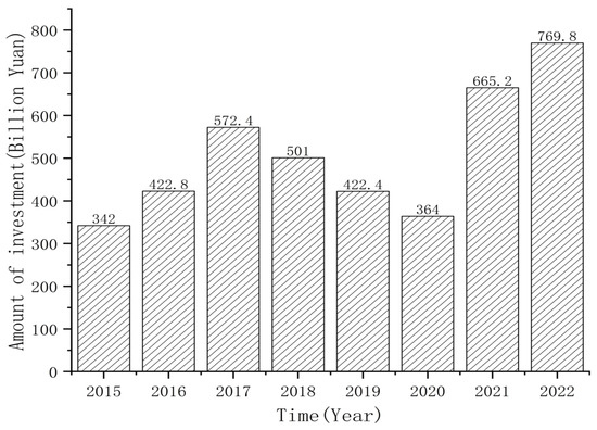 The year-to-year increase in the planting area of the continuous growth of the downstream industry has led to increased investor confidence in the greenhouse sector, and we can see in Figure 5 that greenhouse investments in China underwent substantial increases in the years 2021 and 2022, although a variation can be noticed in the period from 2015 to 2020 [5]. The increased investment in the period 2021 to 2022 is due to the introduction of relevant government policies and the end of the three-year COVID-19 pandemic, both resulting in increased investor confidence.