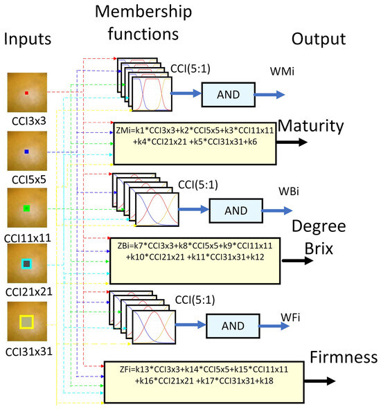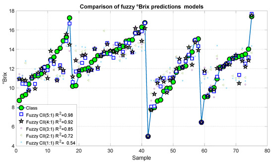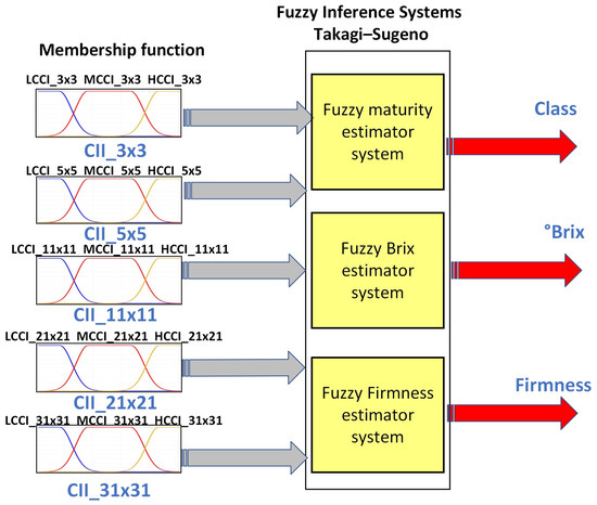 | Model 10 | Fuzzy | CCI(3 × 3), CCI(5 × 5), CCI(11 × 11), CCI(21 × 21), CCI(31 × 31) | °Brix | 0.98 | 0.082 |