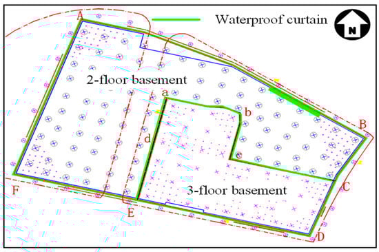 In recent years, with the rapid development of underground space in China, a large number of foundation pit projects have emerged, and the geological and environmental conditions have become increasingly complex [1,2,3,4]. When the stratum where the foundation pit is located is rich in groundwater, it may cause the pit wall leakage, basal heave, surface collapse, etc. [5,6,7]. It is reported that about 60% of underground engineering accidents are caused by groundwater [8]. Therefore, it is necessary to take some measures to reduce the adverse effects of groundwater. The waterproof curtain is widely used in engineering as an effective waterproof measure [9,10], and its construction quality has a significant impact on foundation pit safety and environmental responses.