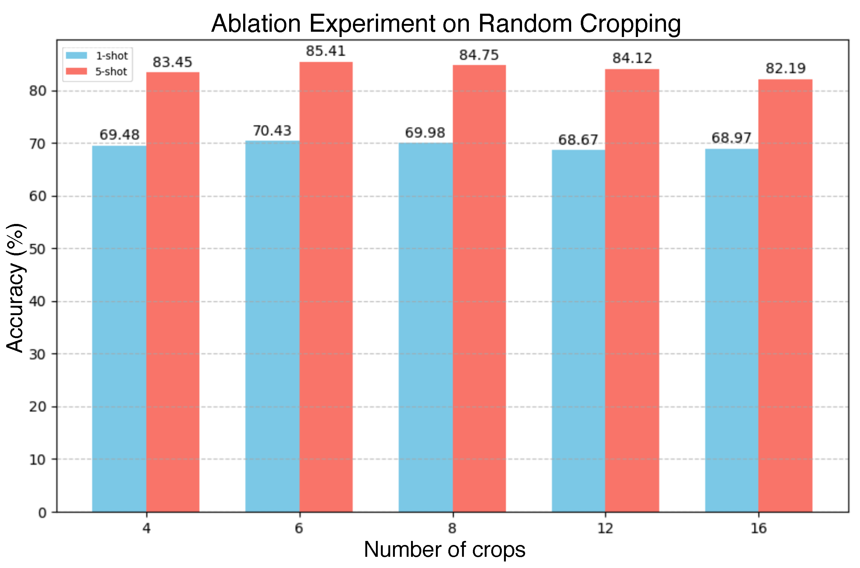 Figure 5. The results indicate that the performance is optimal when using six random crops. Fewer crops result in insufficient samples in the query set, while a larger number increases dataset size but can lead to overfitting. Therefore, we choose to use six random crops to achieve the best experimental outcomes.