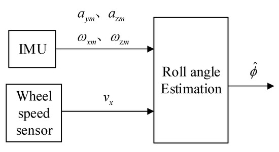 Equations (7) and (8) can be used as the roll angle and yaw rate measured value, which are calculated by the measured signals. However, there is always noise in the actual measurement process. The roll angle and yaw rate, calculated according to the above equation, are different from the actual value. Therefore, it is necessary to estimate the actual value based on the measurement signal and other known information. The estimation input and output is shown in Figure 8.