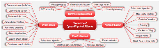 On the other side, microgrid stability can be impacted by operational and infrastructural damages such as hackers, false data injection attacks, denial-of-service (DoS) attacks, and uncertainties. Therefore, microgrids need to be prepared to cover the attacks and guarantee the restoration of stable operation. The types of cyberattacks on microgrids are presented in Figure 3. A false data injection attack, for example, which refers to the situation in which an attacker deceives sensor measurements to introduce unnoticed flaws into the state variable and value calculations [15], can have disastrous effects, particularly in emergency situations and situations involving critical loads. Therefore, one effective way to increase microgrid resilience against cyberattacks is through resilient control.
