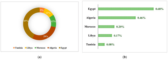 CO2 emissions by North African countries in 2021. (a) in North Africa; (b) in the whole world. Prepared and adapted by the authors from [21].