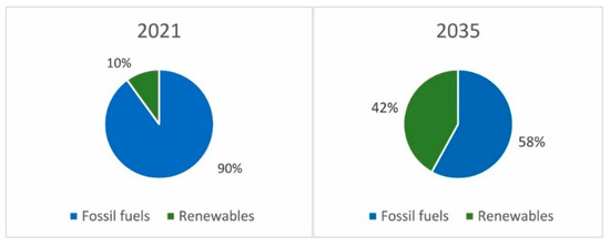 Regarding Egypt, the Integrated Sustainable Energy Strategy projects that by 2035, 42% of the electricity mix will come from renewable sources, as mentioned in Figure 11.