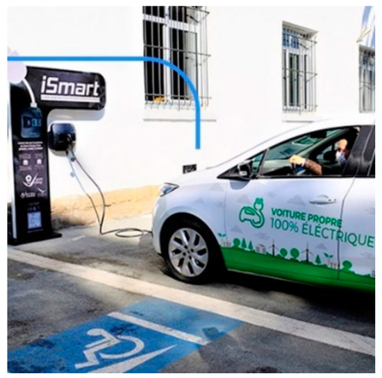 Electric cars can be utilized as Vehicule to Grid (V2G) or Vehicule to Home (V2H) devices to discharge stored energy back into the grid or into residential buildings. Designed for use in both the home and workplace, iSmart is a new line of intelligent charging outlets that are exclusively Moroccan. An entire car charge can be accomplished in thirty minutes with the borne, which has power ranges of 7.5 kW, 22 kW, and 50 kW, as mentioned in Figure 17 [58]. Therefore, the number of charging points increases by putting up electric charging infrastructure, as shown in Figure 18.