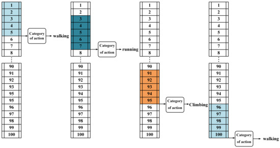 The flow of abnormal behavior detection based on a sliding window is shown in Figure 10. The length of the sliding window is predefined as n. The entire process pseudo-code is shown in Algorithm 1. During the process of performing the timing of abnormal behavior detection task, frame-level behavioral information is recorded for each target subject that occurs.