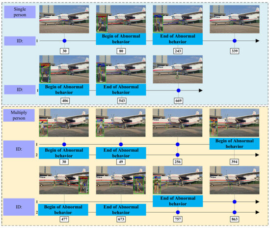 Generally, datasets consisting of training, testing, and validation sets are significant in researching deep learning-based algorithms. Nevertheless, up to now, no public dataset can be used to evaluate the model’s performance for human abnormal behavior detection in an airport scene. Therefore, a unique dataset has to be constructed for abnormal behavior recognition on airport surfaces: the IIAR-30, which is used to evaluate the performance of each module in the NC-ABLD framework.