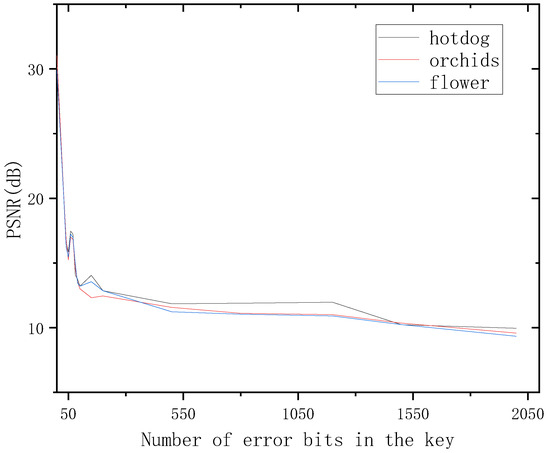 The average PSNR between the original watermark and the extracted watermark under different incorrect bit keys.