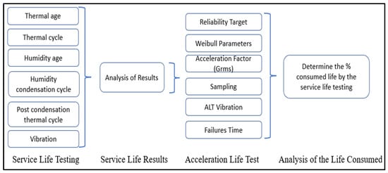 Now, the steps to determine the percentage of product life consumed by the service life testing and the vibration ALT performed in fiber optical connectors are presented in the diagram in Figure 2.